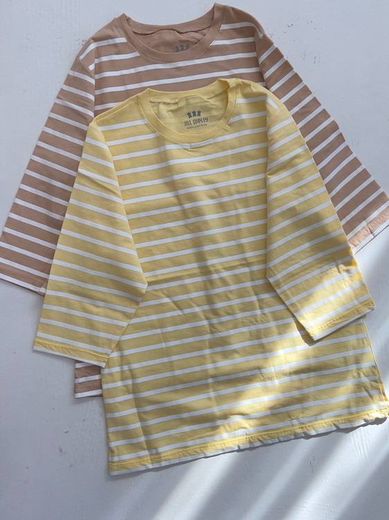 بلوز نخ پنبه راه راه زنانه آستین ۳ ربع