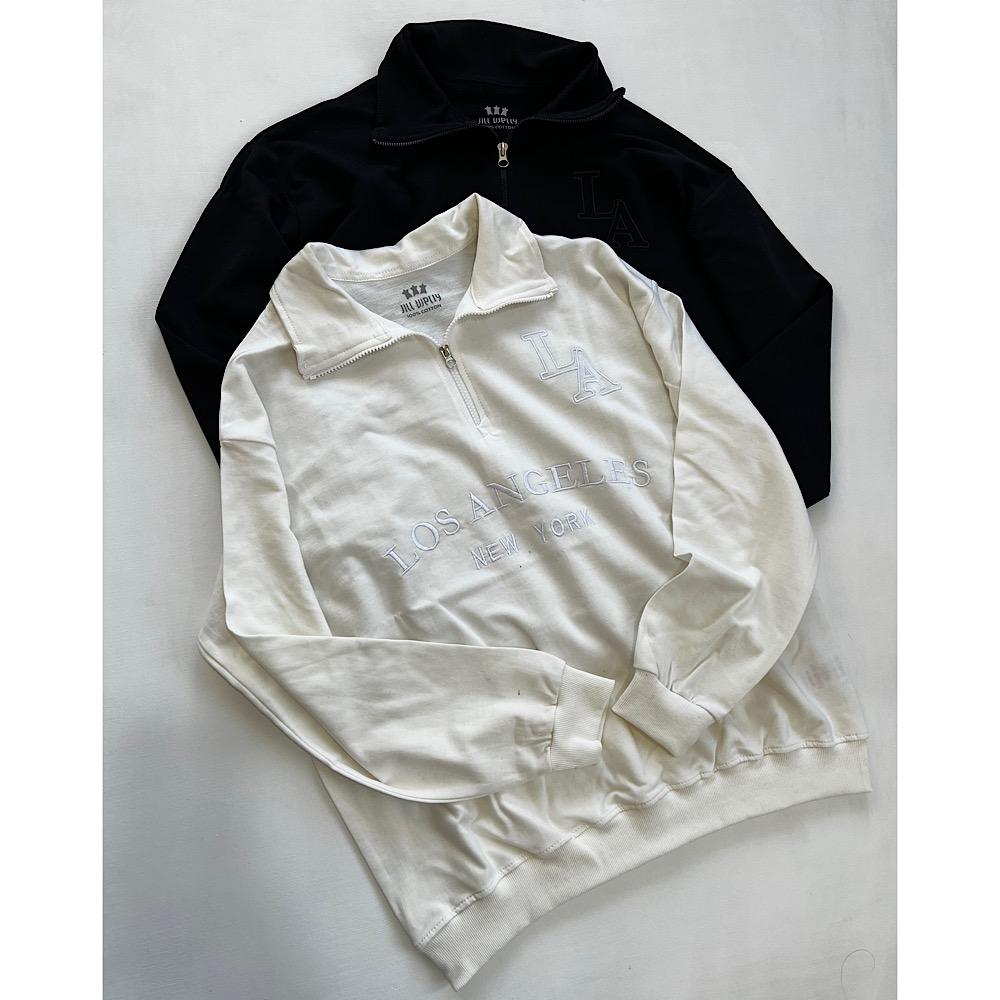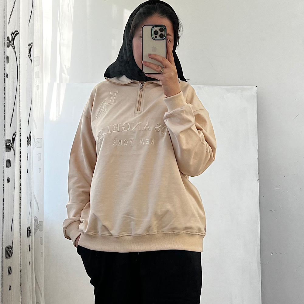 بلوز دورس نیم زیپ زنانه  نخ و پنبه درجه یک رنگ کرمی