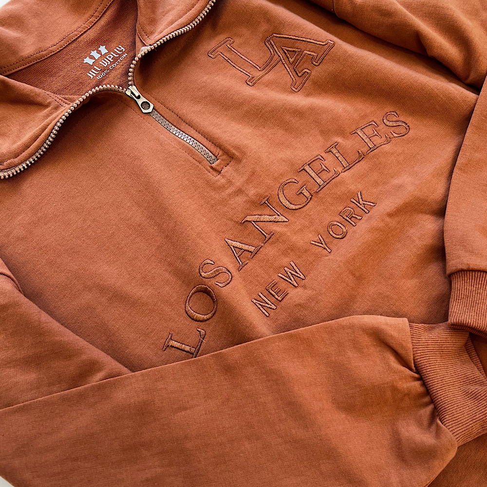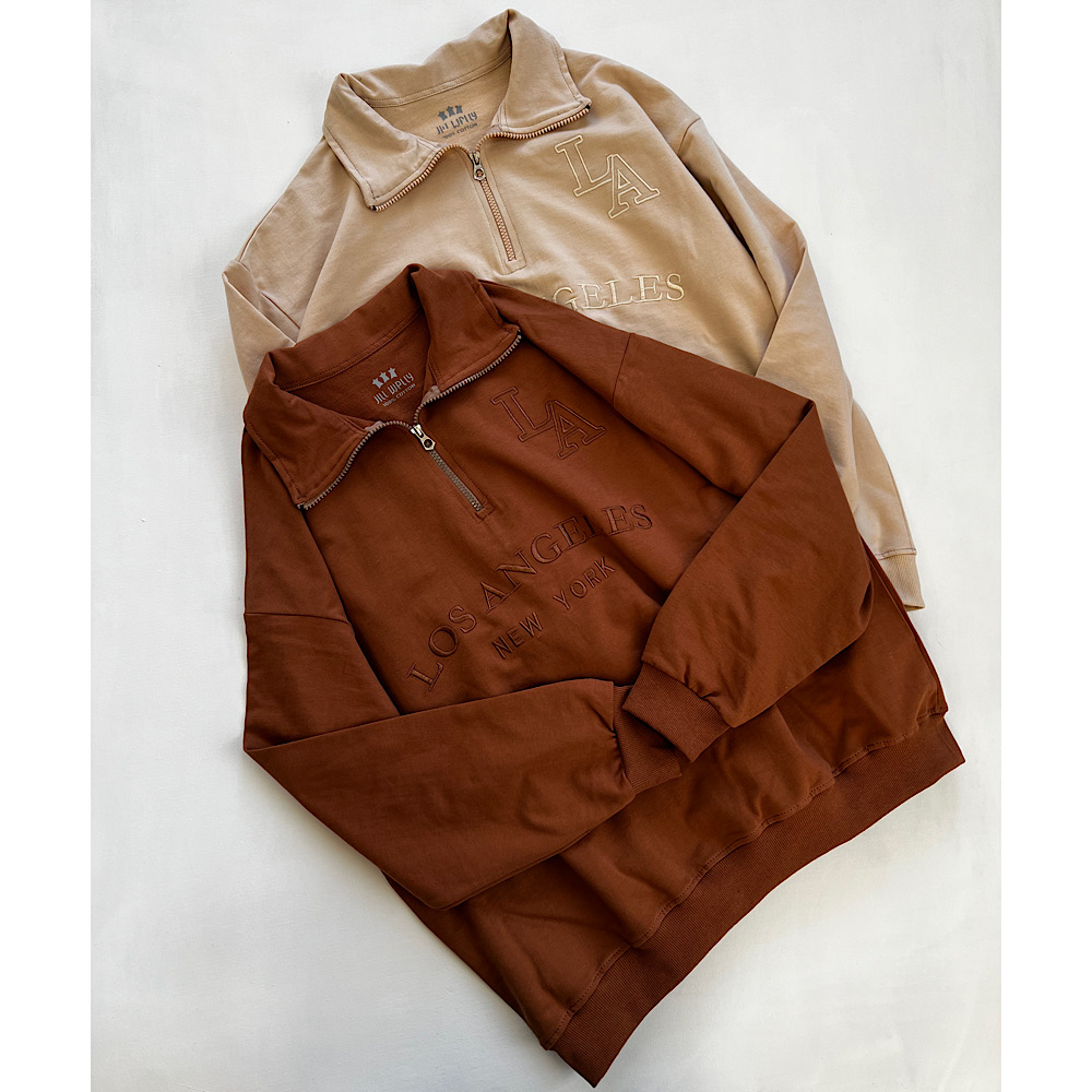 بلوز دورس نیم زیپ زنانه  نخ و پنبه درجه یک رنگ کرمی و قهوه ای
