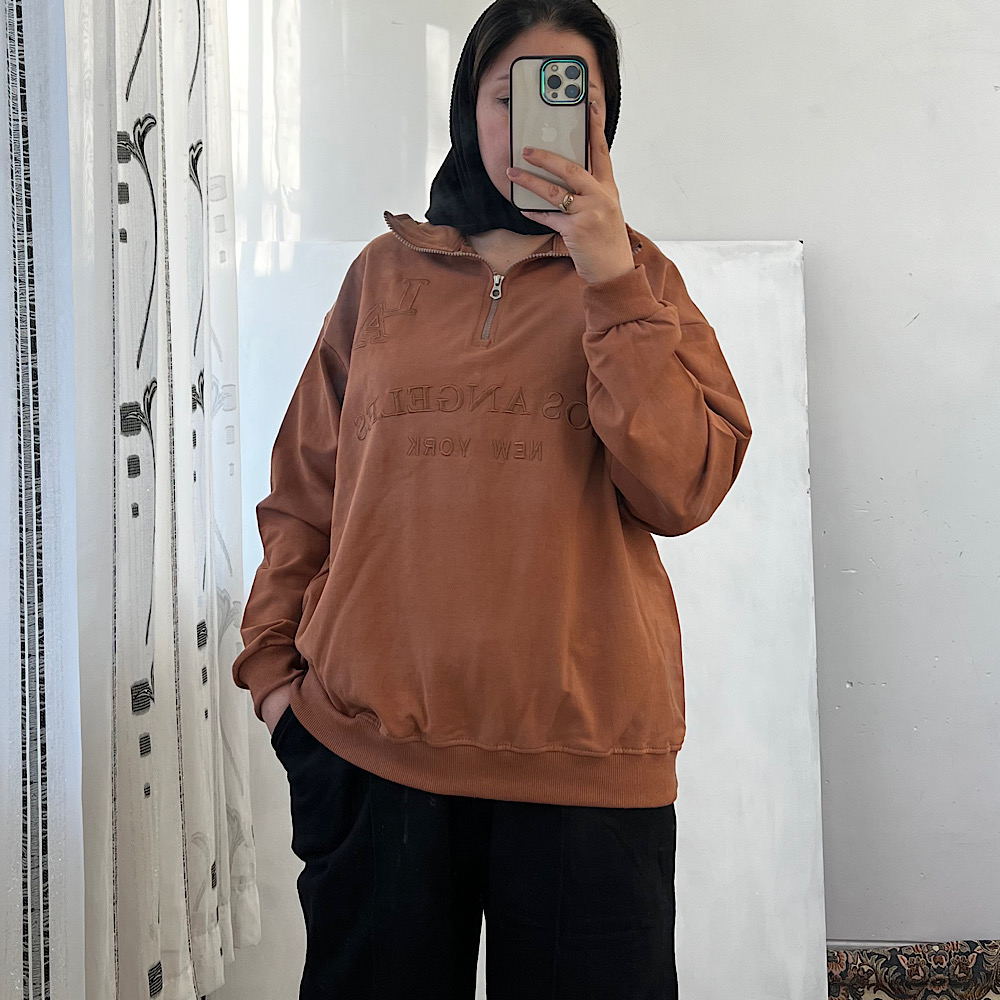 بلوز دورس نیم زیپ زنانه  نخ و پنبه درجه یک رنگ قهوه ای