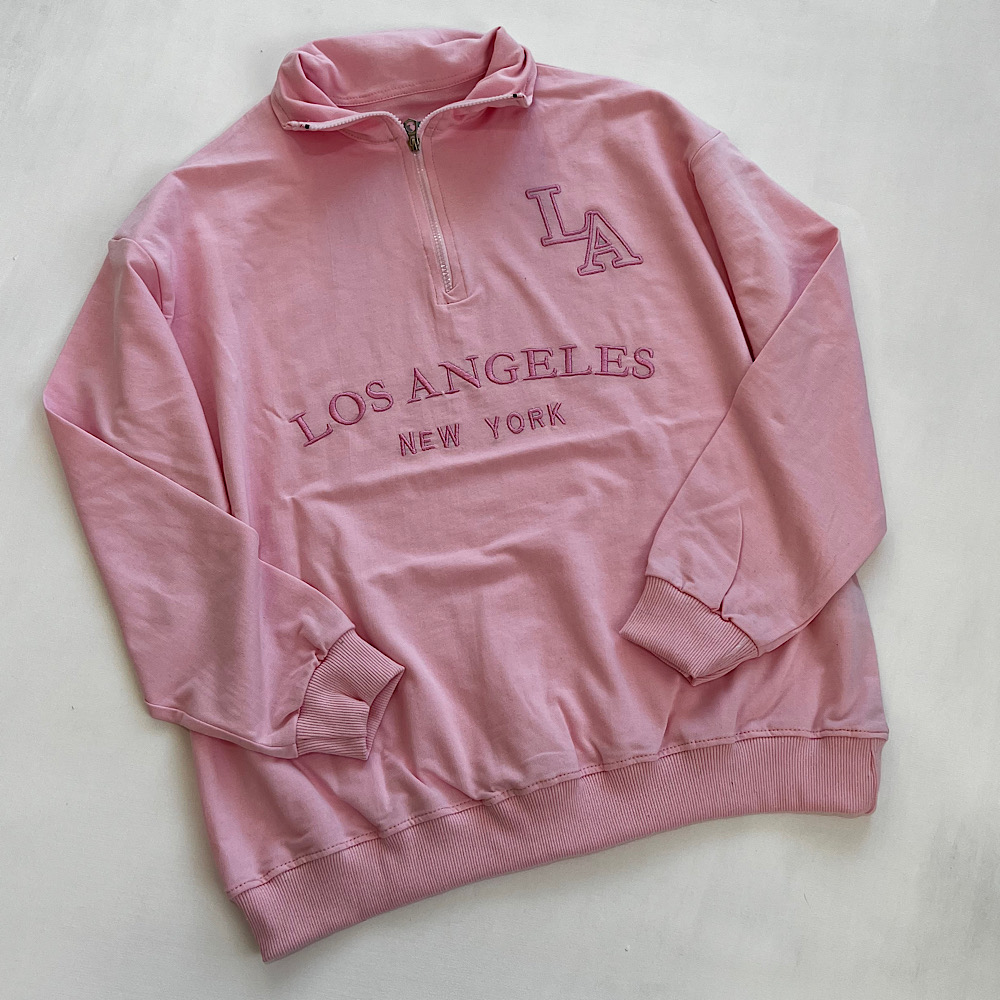 بلوز دورس نیم زیپ زنانه  نخ و پنبه درجه یک رنگ صورتی پودری