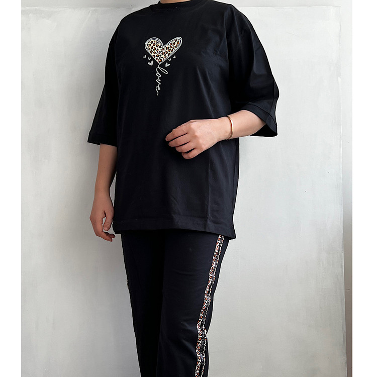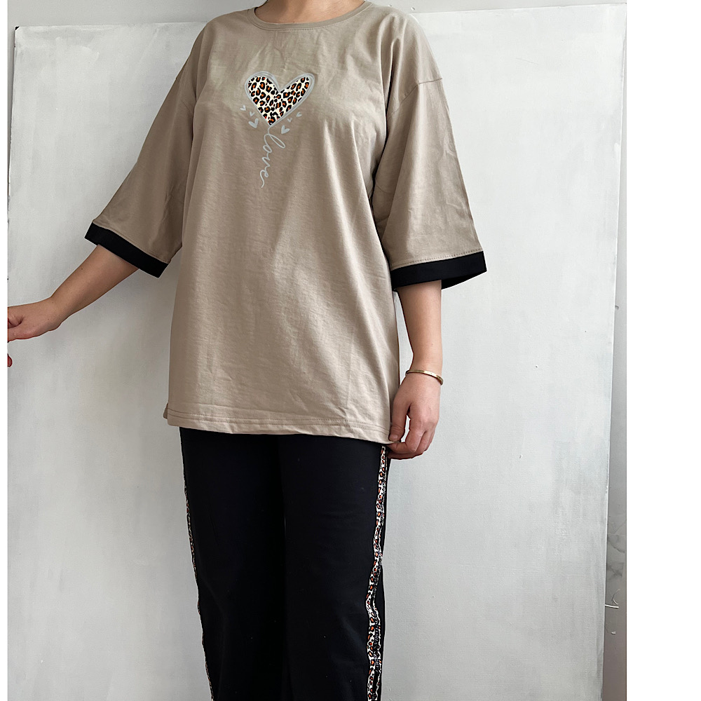 سایزبندی: فری سایز دورسینه درحالت عادی ۱۰۶ قد آستین ۴۶ قد تیشرت۷۰