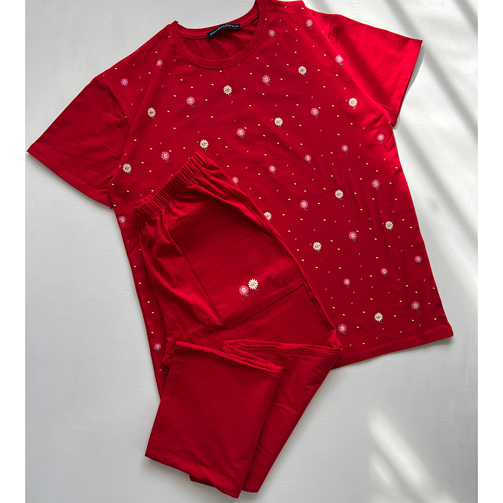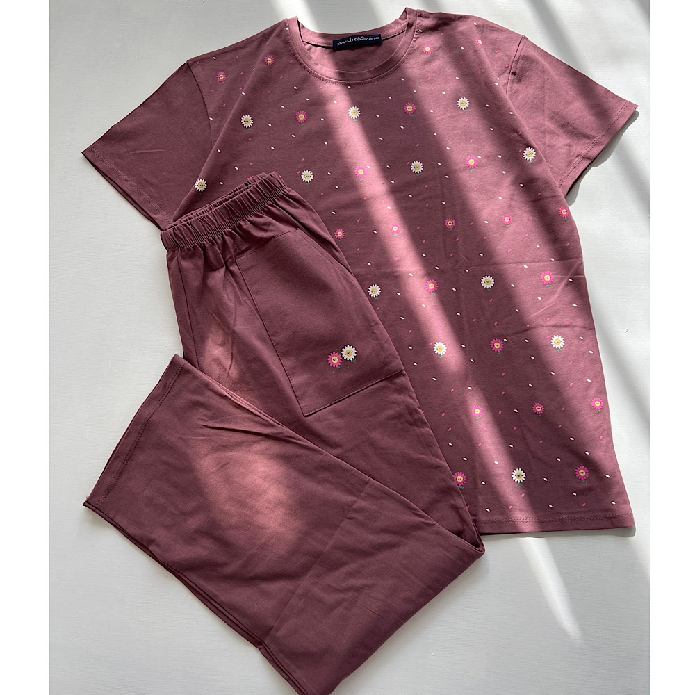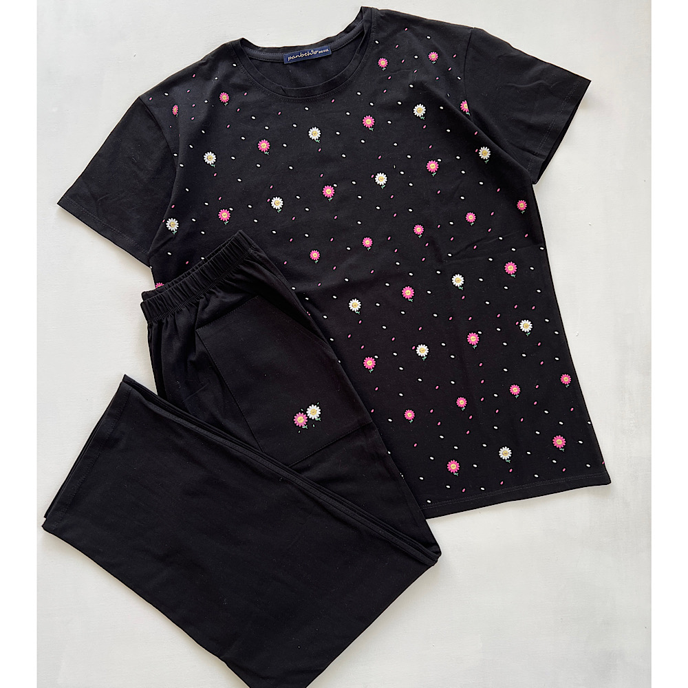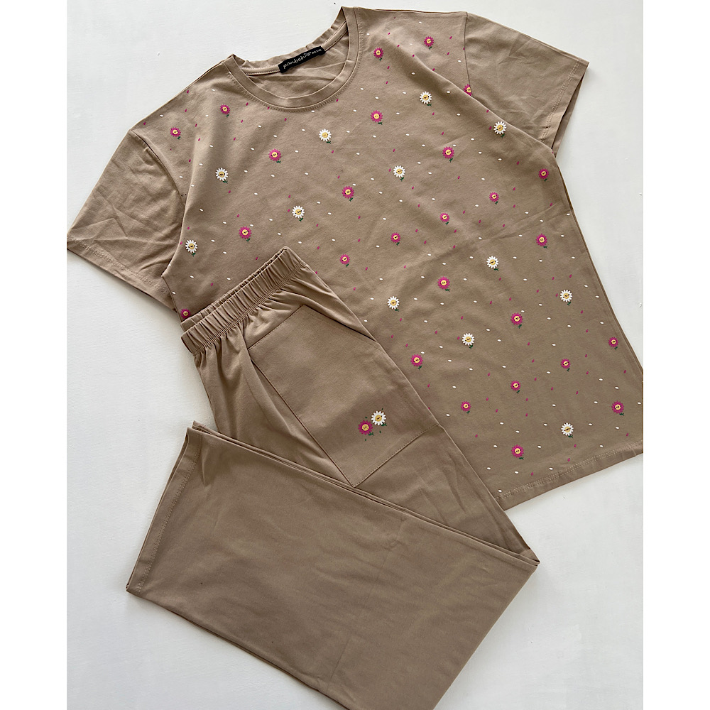 اگر دنبال یک ست راحتی زنانه شیک، خنک و سبک برای استفاده روزمره هستید، این ست تیشرت و شلوار نخی بهترین انتخاب است. طراحی گلهای ریز فانتزی جلوهای لطیف و دخترانه ایجاد کرده و مناسب استفاده در منزل و مهمانیهای دوستانه است.این ست زنانه در ۱۲ رنگ متنوع آپلود شده