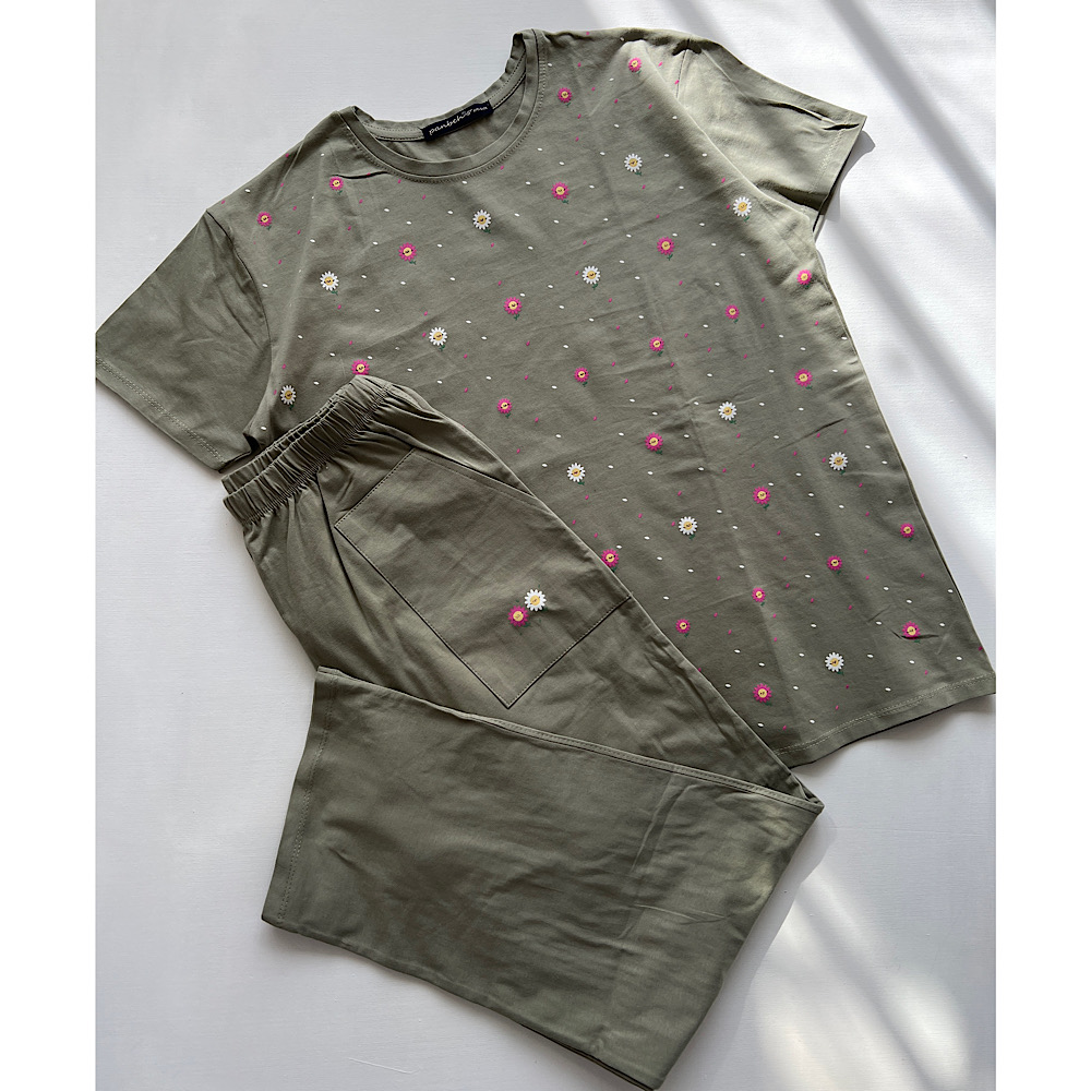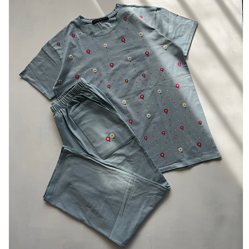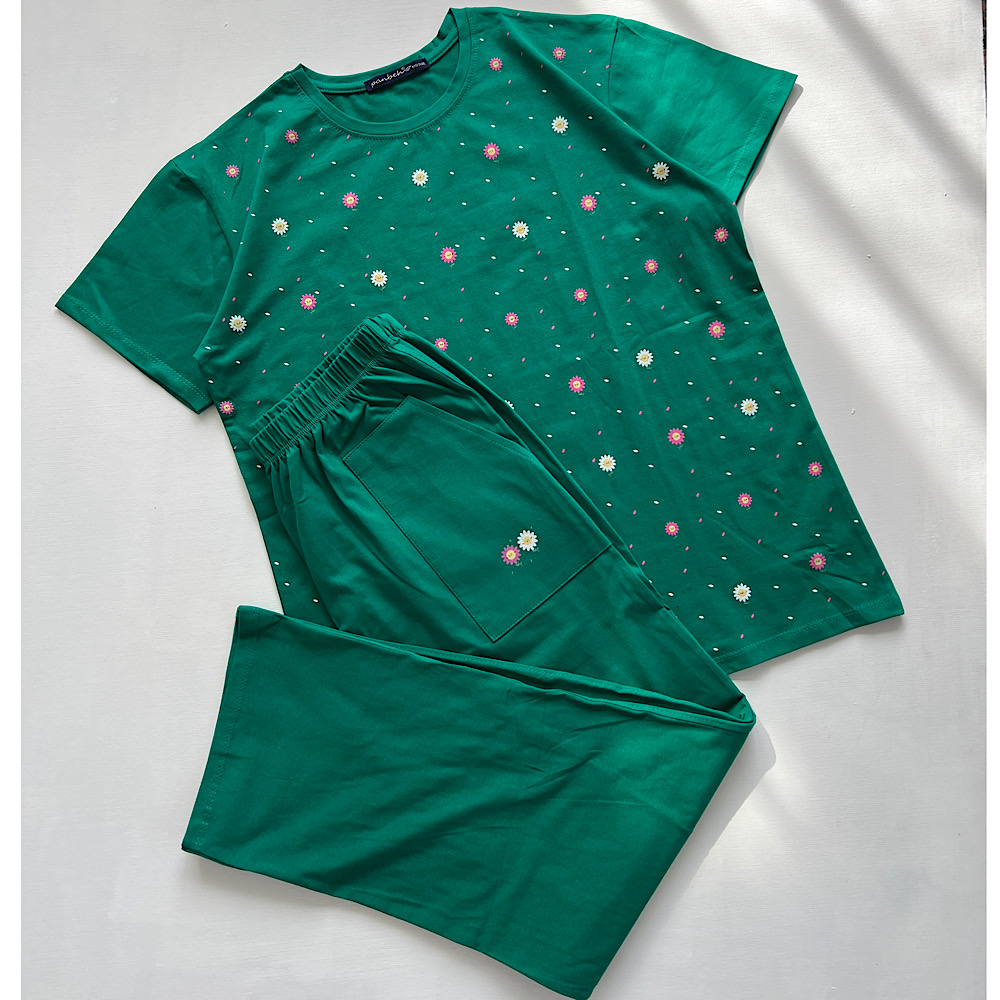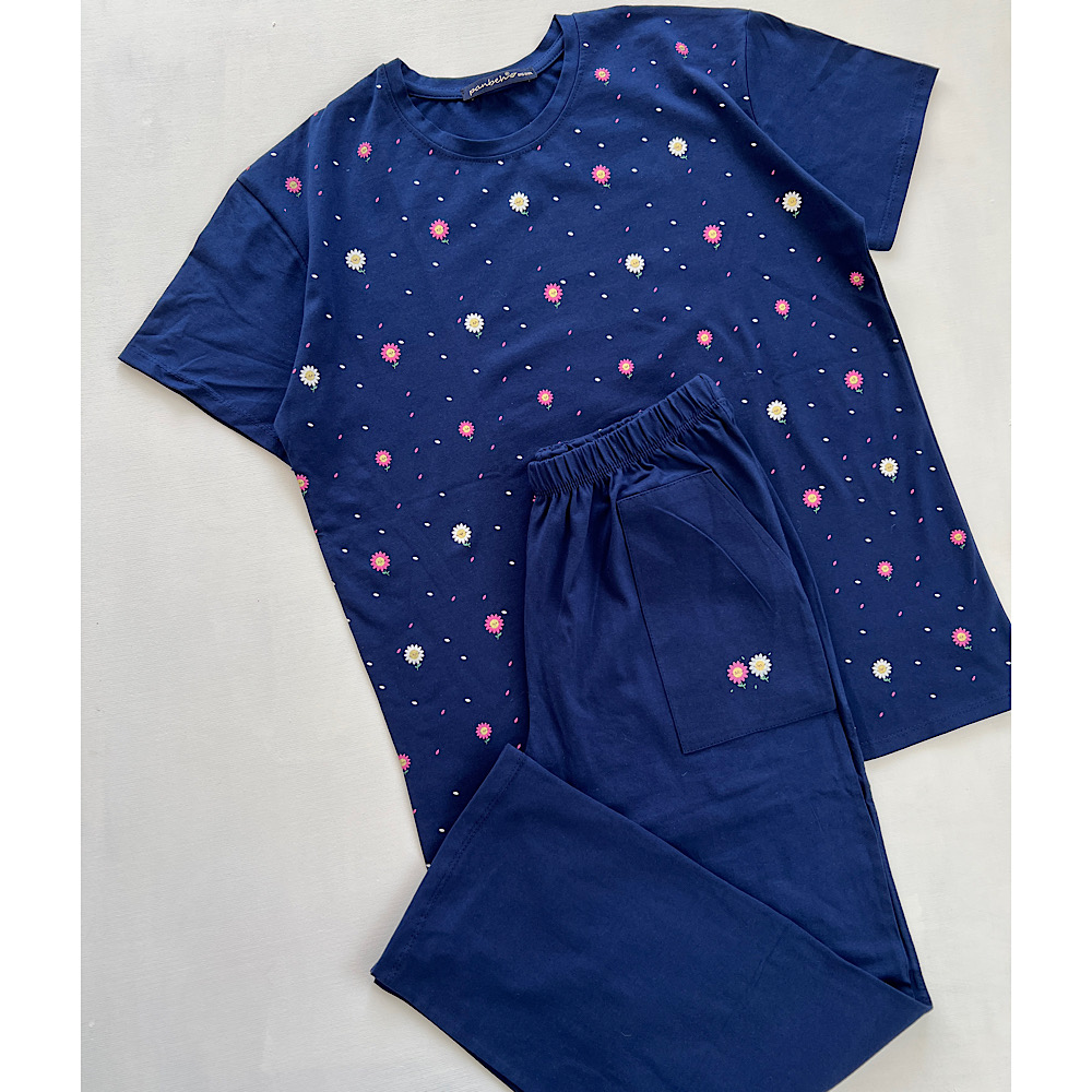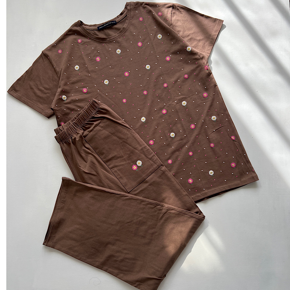 اگر دنبال یک ست راحتی زنانه شیک، خنک و سبک برای استفاده روزمره هستید، این ست تیشرت و شلوار نخی بهترین انتخاب است. طراحی گلهای ریز فانتزی جلوهای لطیف و دخترانه ایجاد کرده و مناسب استفاده در منزل و مهمانیهای دوستانه است.این ست زنانه در ۱۲ رنگ متنوع آپلود شده